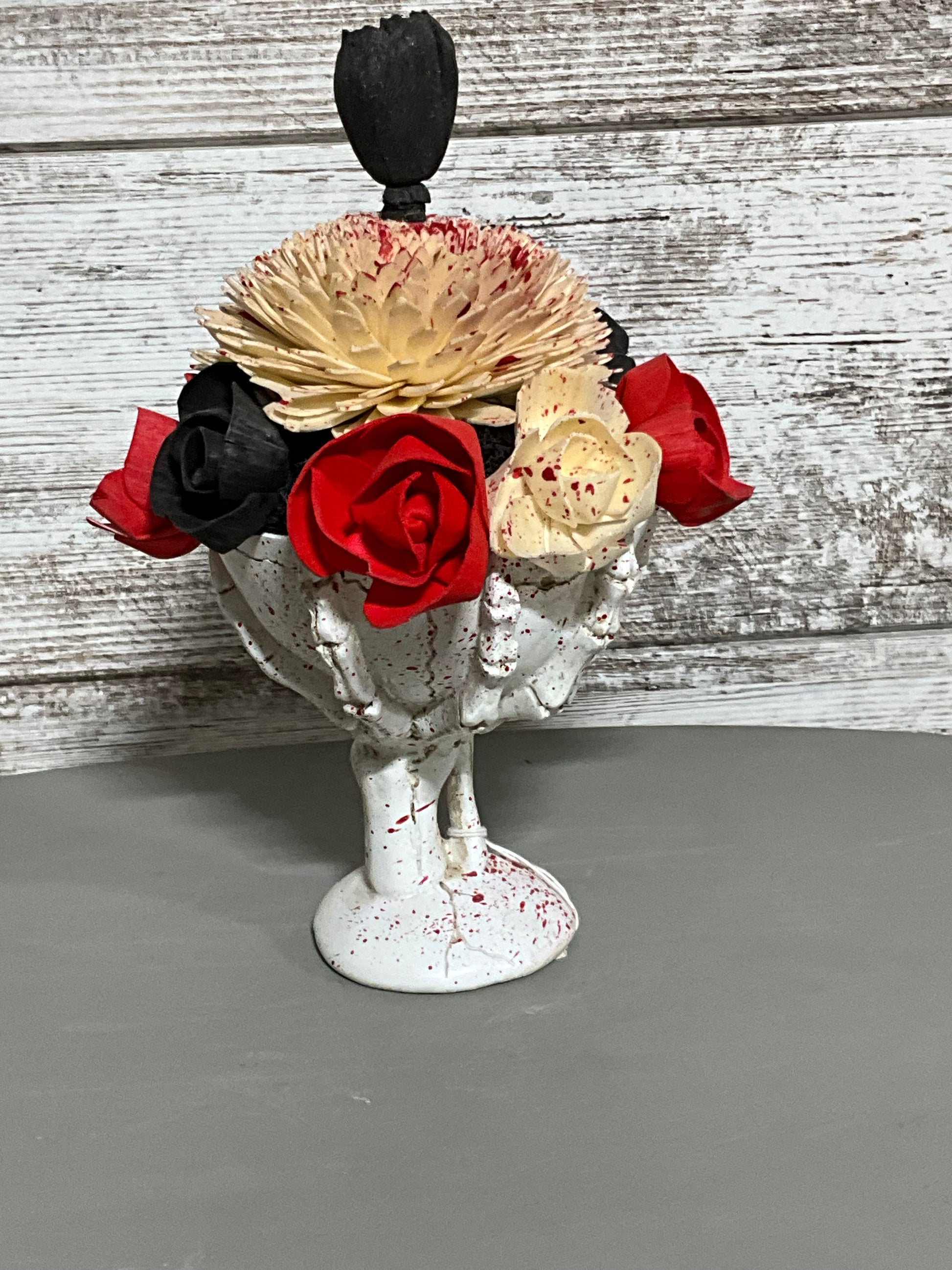 Gothic Elegance Blood Splatter Chalice Wooden Arrangement | Gothic Home Decor